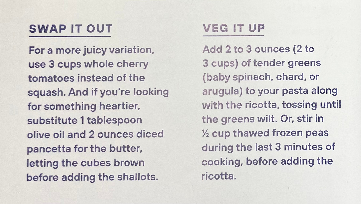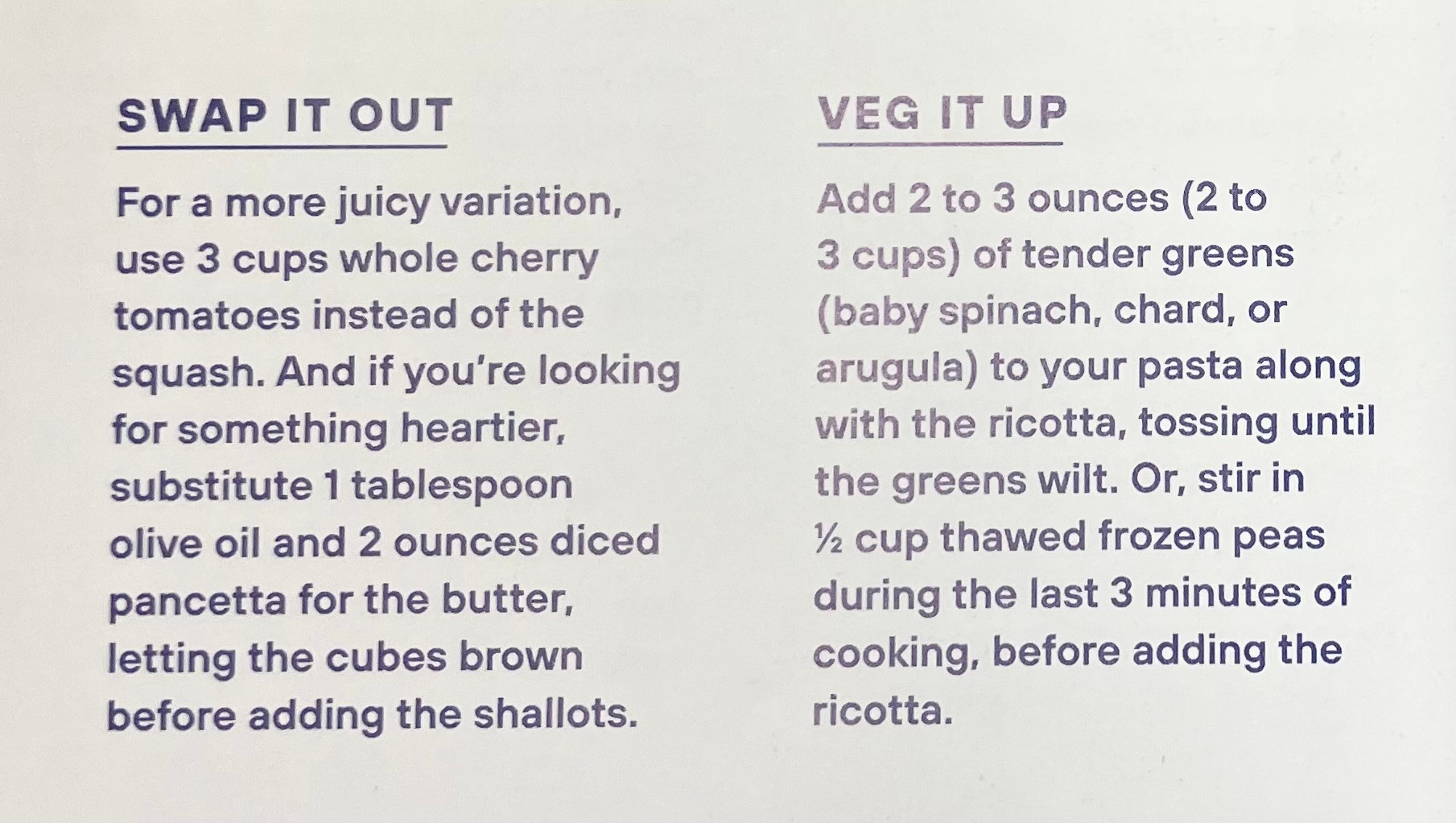 I would dare say that this is one of the most flexible cookbooks I’ve ever read, and it is 100% the most flexible in my collection. For this newsletter, I attempted to count all of the different suggestions given with each recipe and lost track midway through the first chapter. Working backwards, I decided to count how many recipes didn’t offer a specific note in the sidebar on recommended ways to alter a recipe - only 7. Even those list options in the ingredient lists themselves, be it the recommended herbs or the choice of wine versus stock. Those tweaks might seem minor to experienced home cooks but can be a big help if you're still gaining confidence in the kitchen.
